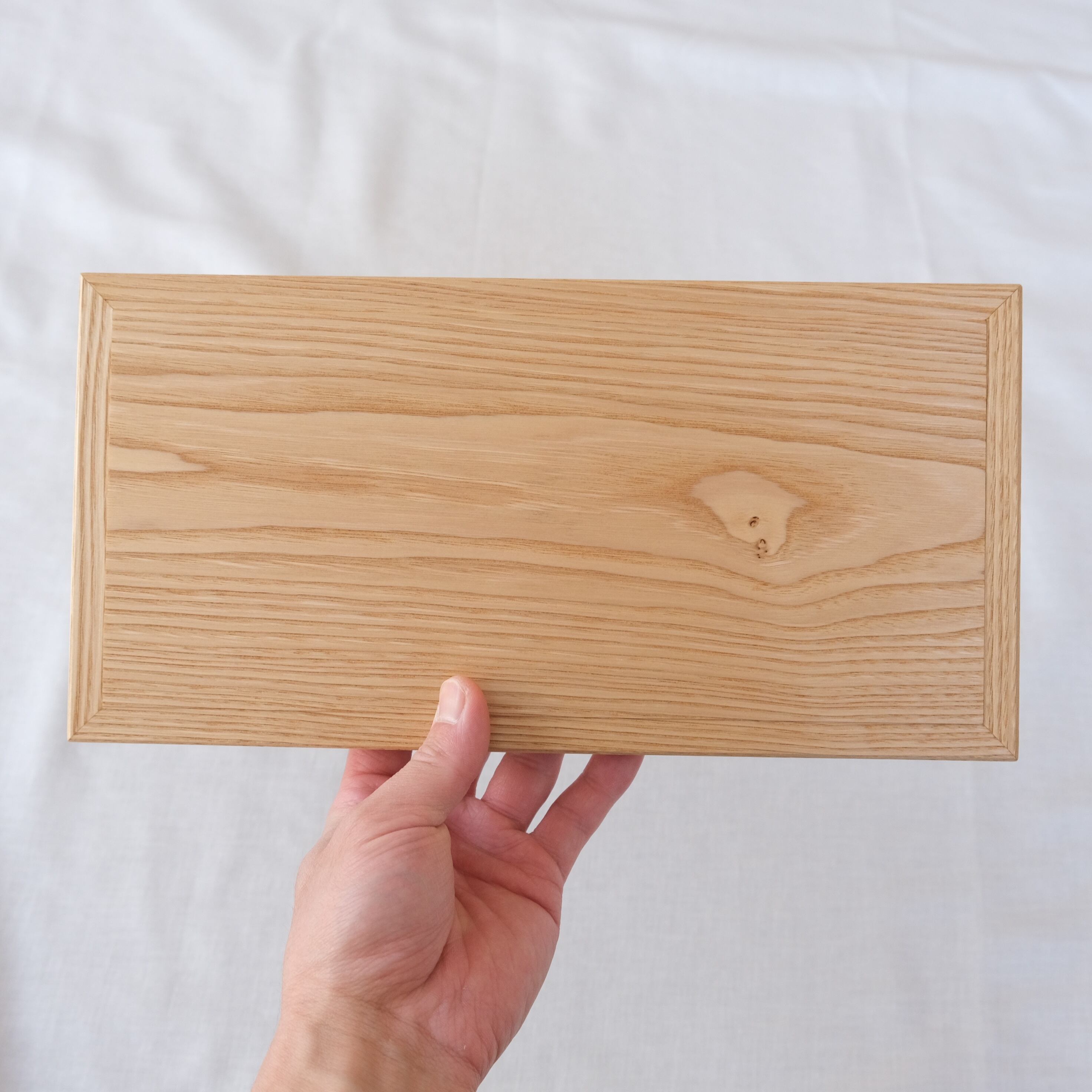 普通の板のようでいて普通ではない、額縁のようなカッティングボードです。